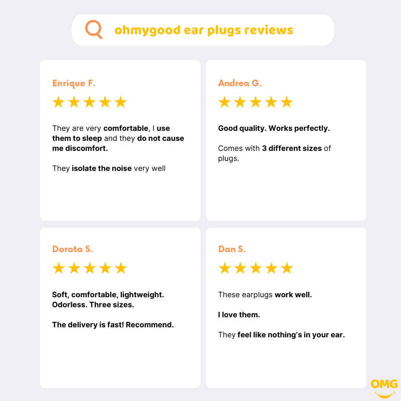 😊 Our ohmygood™ ear plugs promote noise reduction which can lead to better, more restful sleep.